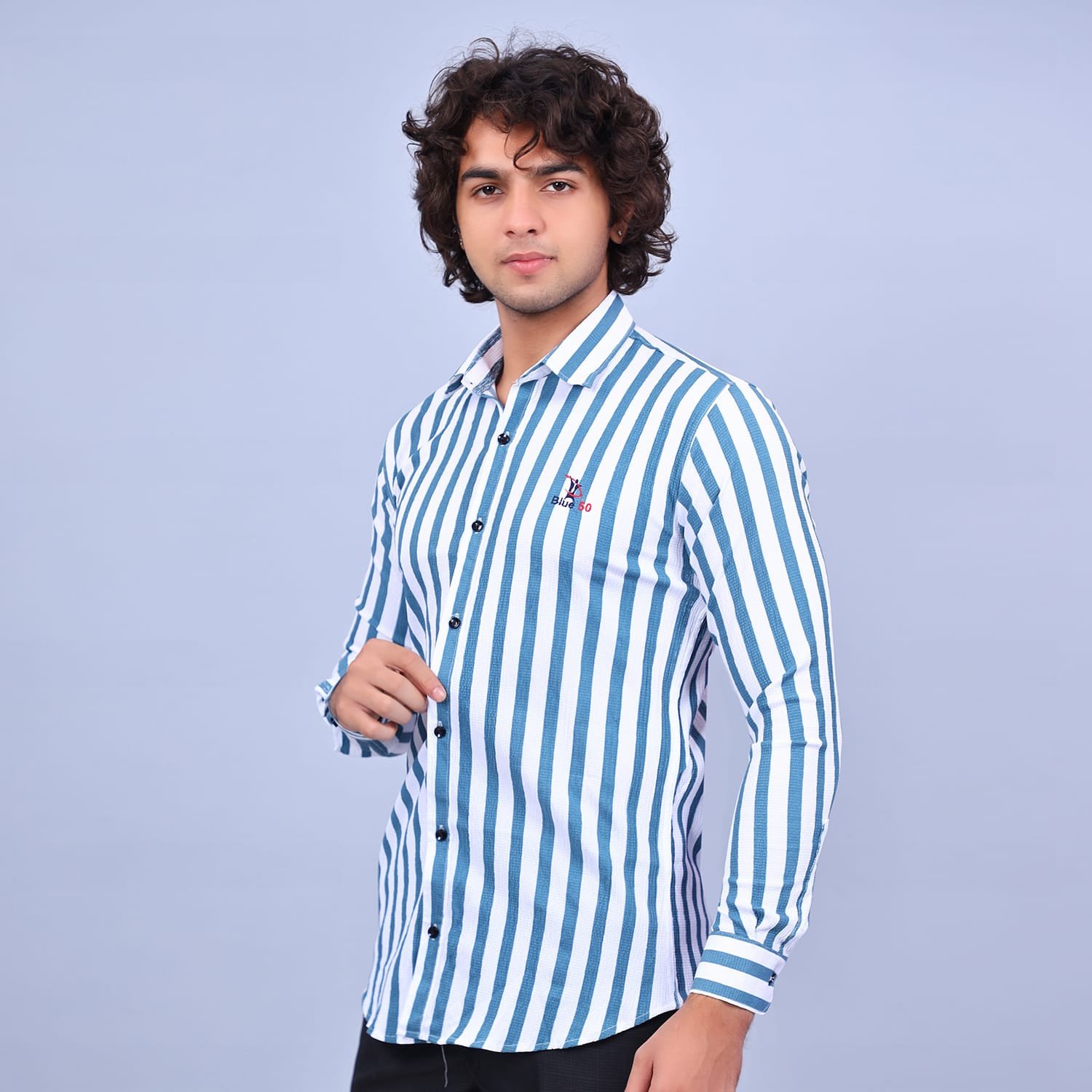 Blue50 Green Strip white shirt With full sleeve