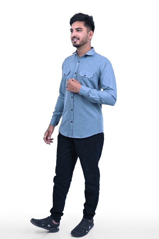 Blue50 Mid Blue colour Dubble pocket shirt full sleeve